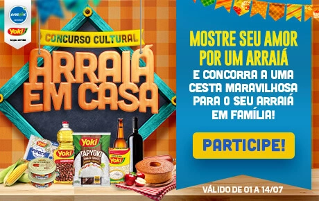 Tá rolando o Concurso Cultural Arraiá em Casa com Prezunic e Yoki. Uma oportunidade incrível de ganhar uma cesta cheia de produtos de qualidade para o arraiá da sua família. Quer participar? Se liga no passo a passo: